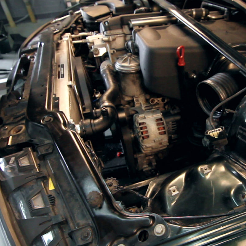 Keep your E46 M3 cool with the Mishimoto Performance Aluminum Fan Shroud Kit! This unique electric fan shroud setup completely eliminates the stock, failure-prone mechanical fan. The fan shroud mounts directly to both stock and Mishimoto radiators and includes a 16in high-flow electric fan that produces over 1850 cfm of airflow. Our in-house Dynojet testing has shown a 5 whp gain from 6500-7500 rpm and 1-2 whp gains over a majority of the power band after removing the factory clutch fan. Optionally, this kit can include an adjustable fan controller and wiring kit, which will provide the user with total control over coolant temperatures. The Mishimoto BMW E46 Fan Shroud Kit includes a removal tool for the clutch fan as well as all hardware required for installation. This fan shroud has a brushed finish that provides a subtle accent for your engine bay. As with all our products, this fan shroud kit includes the Mishimoto Lifetime Warranty, ensuring superior product quality and craftsmanship.